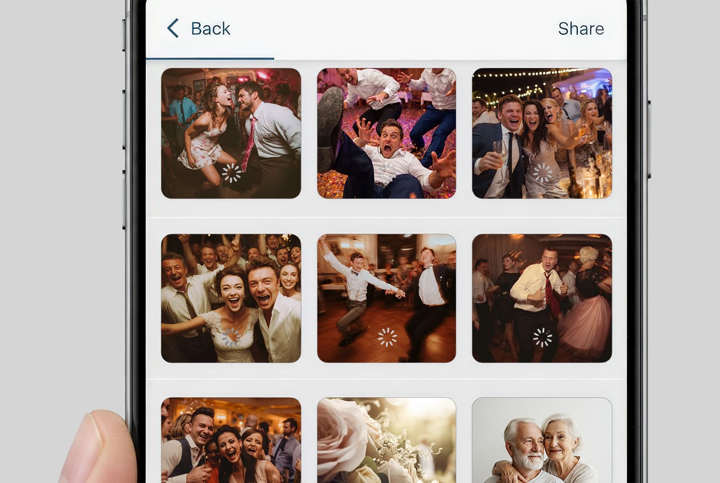 Zamiast kilkunastu wątków, komunikatorów i maili, goście dzielą się zdjęciami grupowo — w jednym miejscu, bez utraty jakości i bez bałaganu.